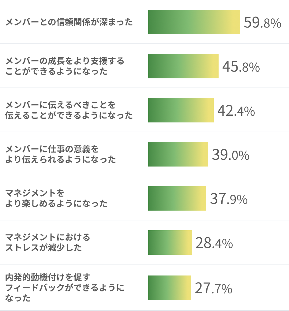 【質問】リードマネジメント・スタンダードを受講して本日まで、現場でポジティブな変化はありましたか。