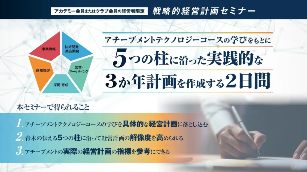 ※本セミナーはアチーブメントアカデミー会員またはクラブ会員の経営者・同法人幹部の方限定の講座です。