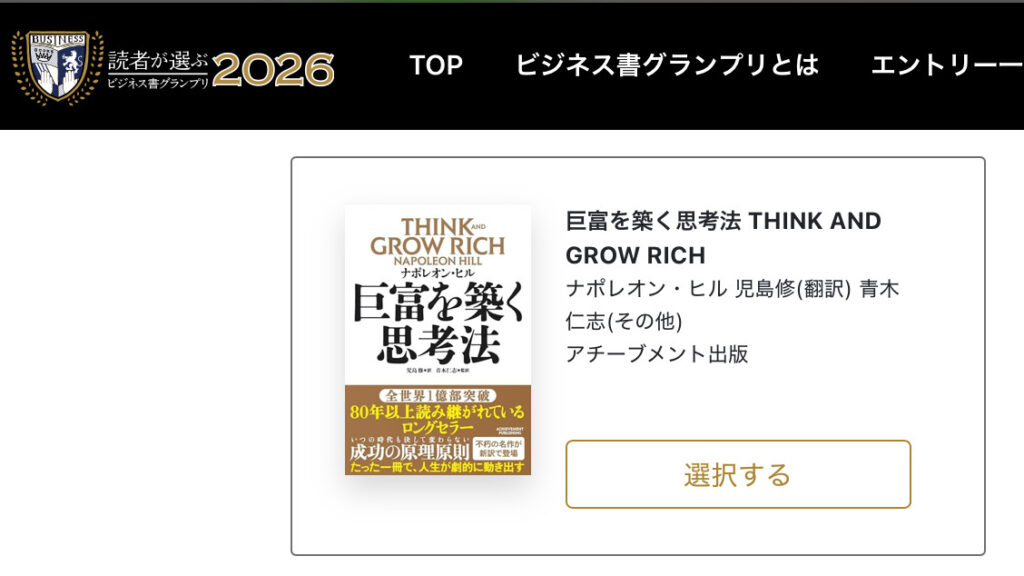この度「読者が選ぶビジネス書グランプリ2026」の