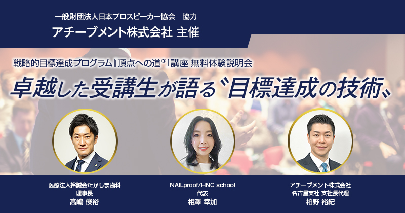 圧倒的な成果を上げていらっしゃる受講生の方より、その目標達成の技術の実践方法をお伝えいただきます。