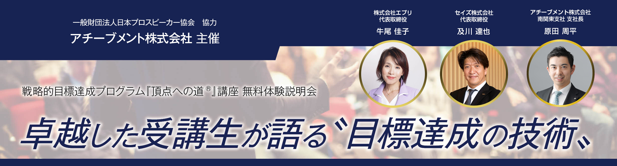 33年連続開催し、7万名以上が受講している戦略的目標達成プログラム『頂点への道』講座。