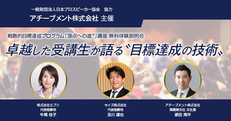 圧倒的な成果を上げていらっしゃる受講生の方より、その目標達成の技術の実践方法をお伝えいただきます。