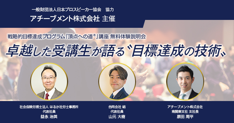 圧倒的な成果を上げていらっしゃる受講生の方より、その目標達成の技術の実践方法をお伝えいただきます。