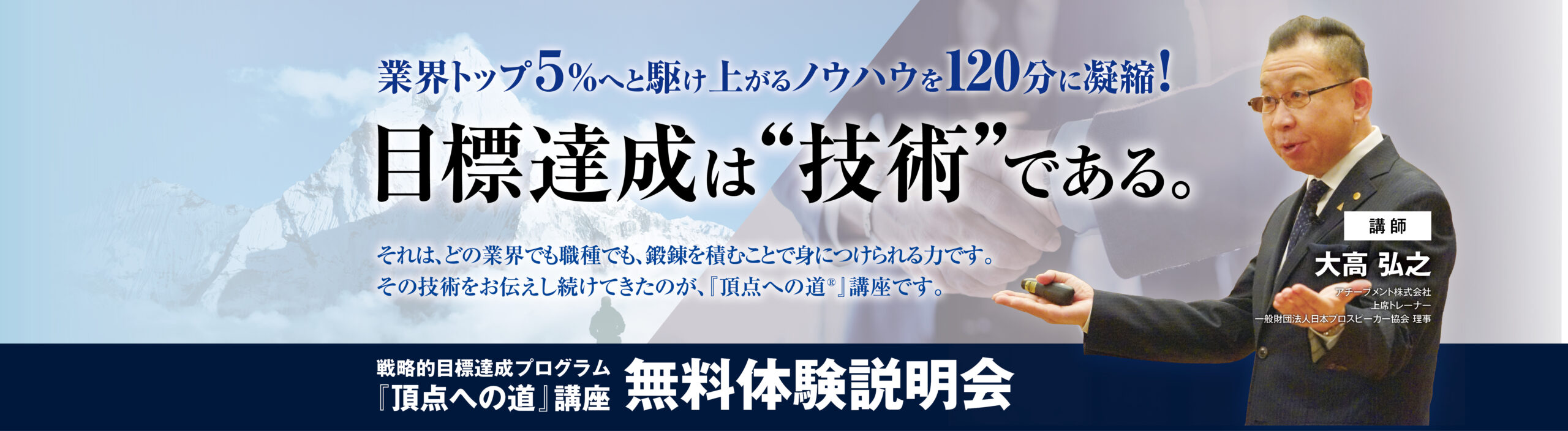34年連続開催し、7万名以上が受講している戦略的目標達成プログラム『頂点への道』講座。